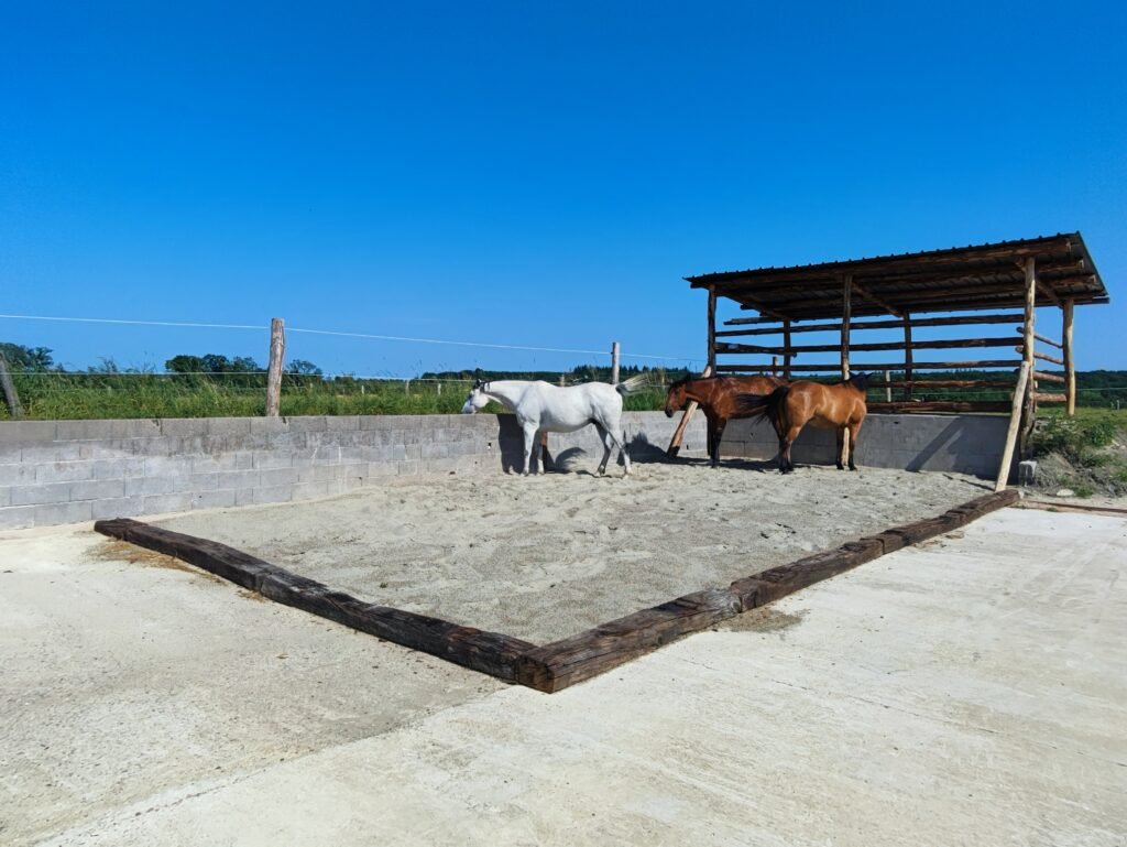 Un espace en sable profond qui permet aux chevaux de venir se rouler, jouer ou encore se reposer.